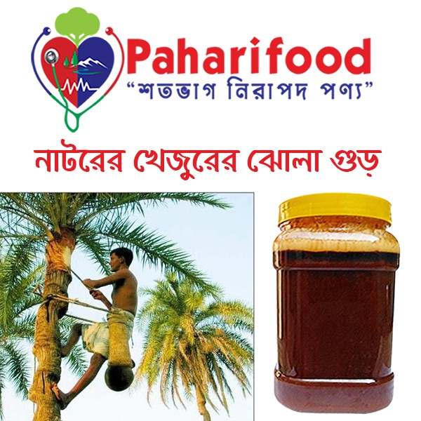 প্রাকৃতিক উপায়ে সংগৃহকৃত খেজুরের রস থেকে তৈরি করা হয় খেজুরের গুড়। পাহাড়ি ফুড দিচ্ছে ১০০% বিশুদ্ধ এবং চিনি বা অন্যান্য কেমিক্যাল মুক্ত খেজুরের গুড়।